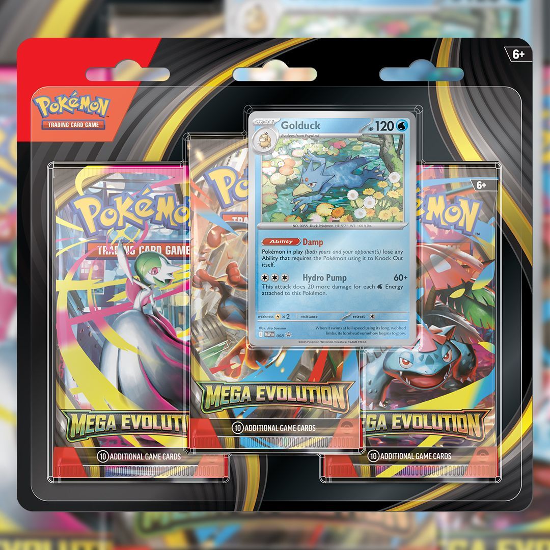 Striving to become stronger, Pokémon of all types are putting everything on the line to become Mega Evolution Pokémon ex! Harness the strong aura of Mega Lucario ex, embrace the overflowing power of Mega Gardevoir ex, and team up with more of these powerful Pokémon that boast devastating attacks and massive HP. But consider your strategy carefully—extra power brings extra risks! Choose your Pokémon partners and prepare for the biggest battles you’ve ever seen in the Pokémon TCG: Mega Evolution expansion!